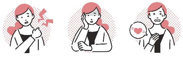 호르몬 불균형이 신경계, 내분비계, 자율신경계에 영향을 주며 다양한 증상으로 표출되는 것입니다. 이외에도 생활 습관, 스트레스, 유전, 체중, 영양 상태 등에 따라 증상의 강도는 다르게 나타납니다.