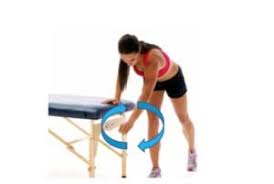 - 몸을 숙이고 팔을 아래로 늘어뜨린 후 원을 그리듯 천천히 돌립니다.
