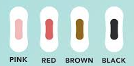- 묽은 분홍색: 착상혈, 저에스트로겐 상태에서 나타날 수 있음