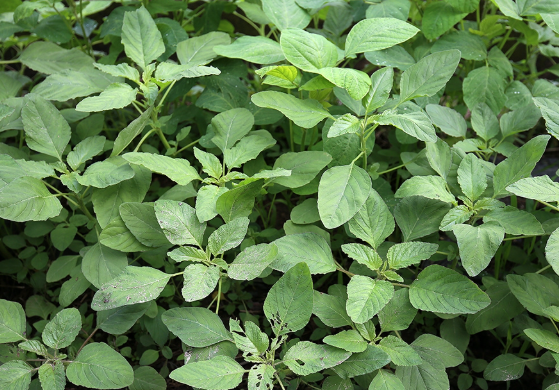 ② 적비름: 잎이나 줄기 색이 붉은 빛을 띠며, 안토시아닌 색소가 풍부합니다. 색이 예쁘고 항산화 성분이 풍부해 건강 식재료로 주목받습니다.