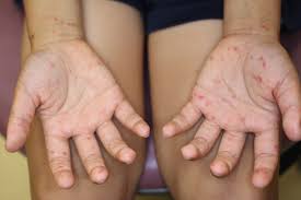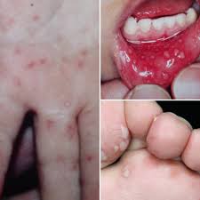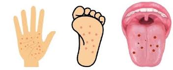 - 발열, 입안 수포, 손발 발진이 특징