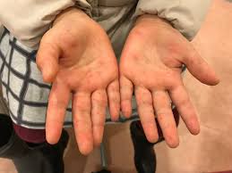 - 손바닥, 발바닥, 엉덩이 수포성 발진