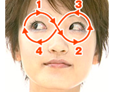 - 눈을 위 → 오른쪽 → 아래 → 왼쪽 순으로 10초 동안 천천히 돌립니다.