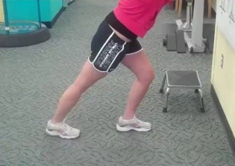 벽에서 1m 정도 거리에서 아킬레스건 염증이 있는 발은 제자리에 두고 건강한 발을 앞으로 내딛습니다. 벽을 손으로 짚으신 상태로 염증이 있는 다리의 종아리 부위와 허벅지가 일자가 되도록 앞다리를 구부립니다. 이 자세를 10초간 유지하며 20회 반복합니다.