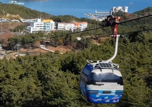 통영 가볼만한곳 베스트10 세번째는 통영 케이블카입니다. 통영 미륵산에 설치된 통영케이블카는 2선(bi-cable) 자동순환식 곤돌라 방식으로 스위스의 최신기술에 의해 설치되었으며, 길이는 1975m다. 평균속도 1초당 4m로 상부역사까지 약 9분이 소요될 예정이며 승객용 곤돌라 47기, 화물용 1기 등 48개의 곤돌라가 순환하게 된다.