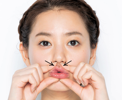 - 손가락으로 입꼬리에서 코 옆으로 부드럽게 밀어주는 마사지